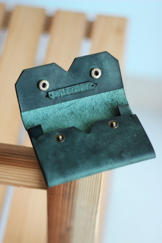 کیف کارت چرم طبیعی دستساز | خاص و کاربردی | رنگ سبز ، مشکی |
